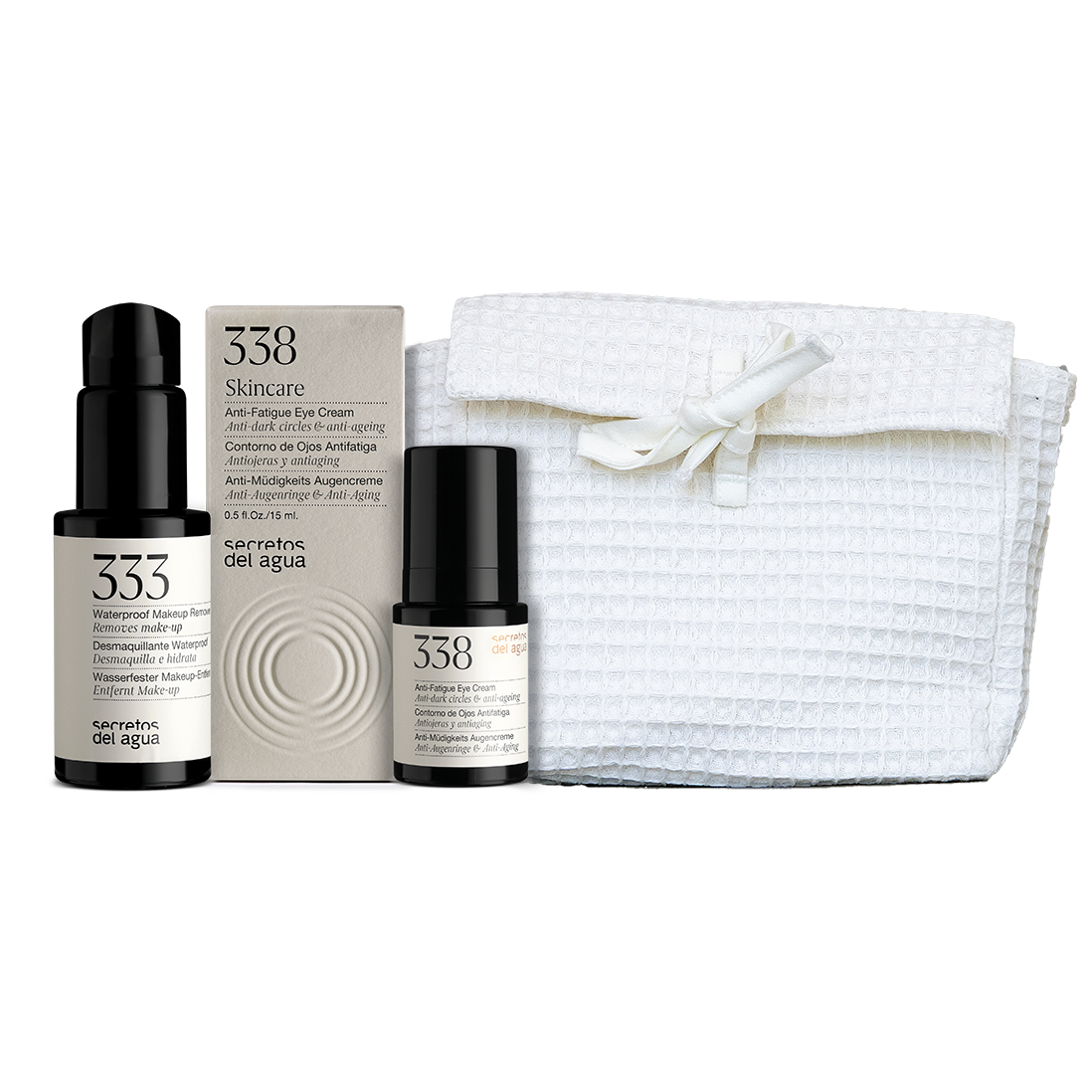La mirada merece un cuidado consciente, delicado y completo. El Dúo Mirada Antifatiga combina el Desmaquillante de Ojos Waterproof, que limpia con suavidad incluso el maquillaje más resistente, con el Contorno de Ojos Antifatiga, que hidrata, drena y revitaliza la zona más delicada del rostro. Una rutina que despierta la luminosidad natural de la mirada y la protege frente al cansancio y las agresiones externas. Además, incluye un neceser artesanal de algodón gofrado y un disco desmaquillante de rizo de bambú, elaborados a mano en la sierra de Madrid, para acompañarte en un gesto de belleza consciente y sostenible.