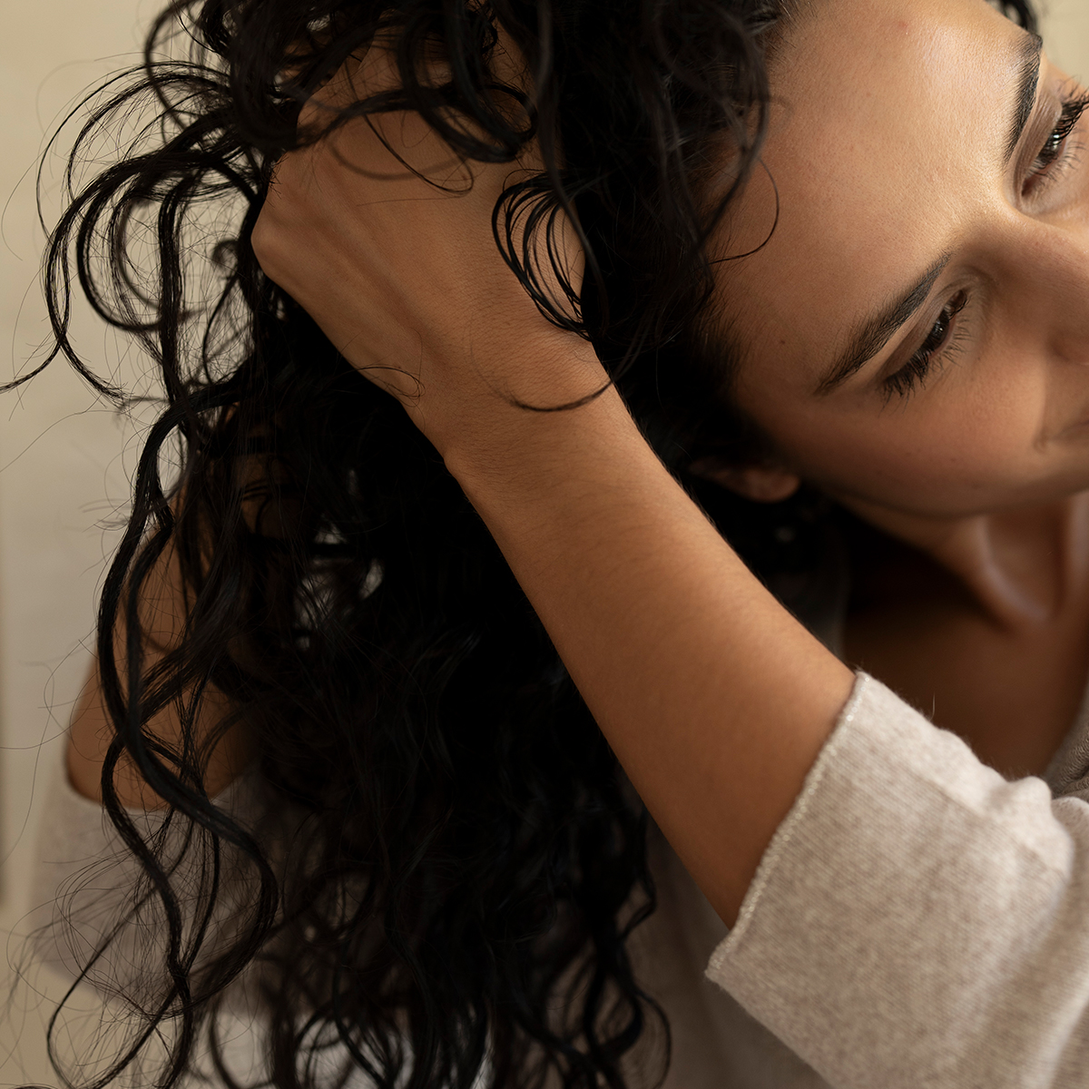 A veces, su cabello con gran densidad y grosor, le pide realizar el ritual curly paso a paso, deteniéndose con cada producto y aplicándolo de forma individual pero, en su día a día, hay momentos en los busca un resultado igualmente definido, flexible, brillante y bonito pero algo más relajado, fácil de conseguir, natural y espontáneo.